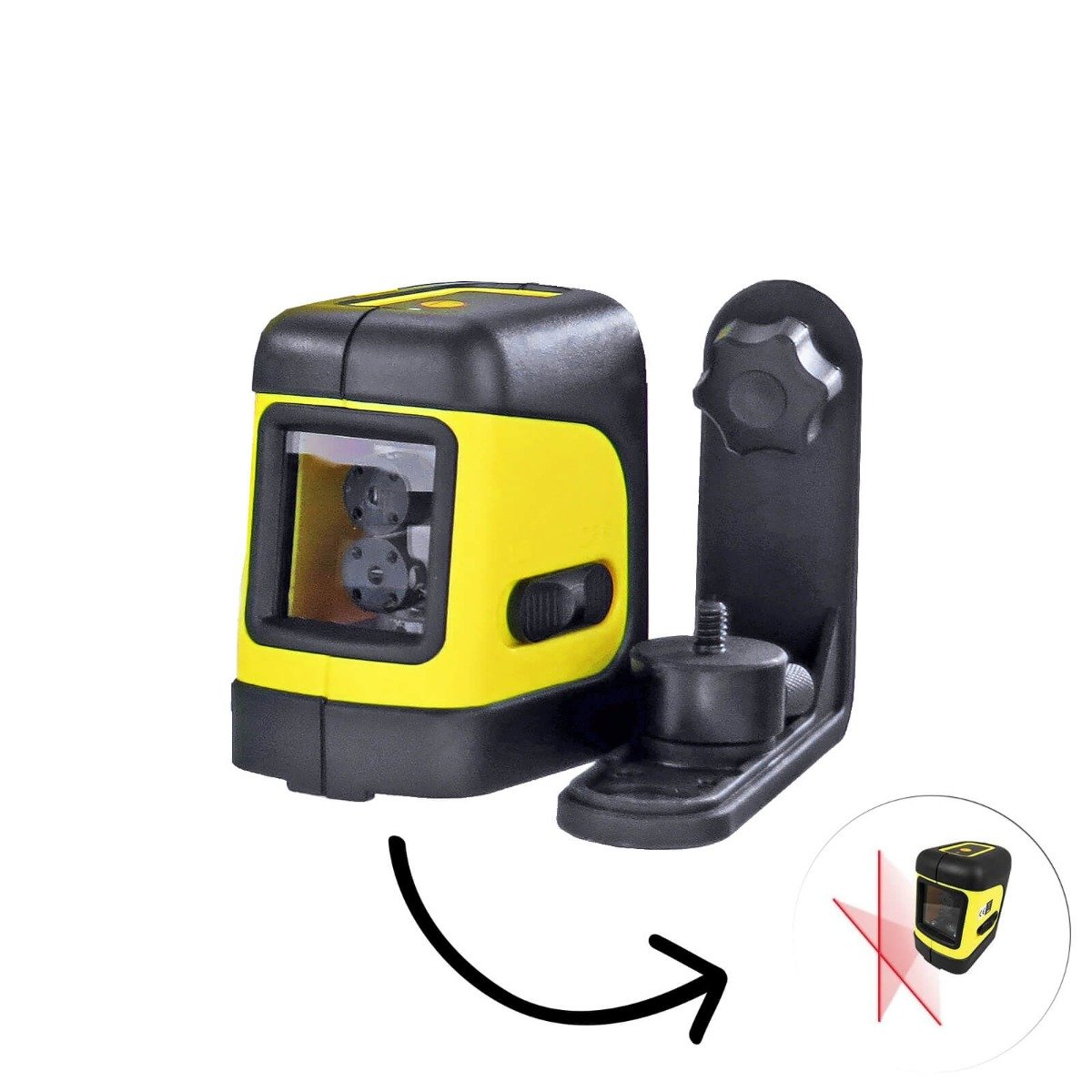 It comes with a very handy multi-function magnetic "L" shaped bracket which acts as an All-in-One system: a wall mounting Bracket & a 5/8" tripod Adapter. This gives the User the choice of mounting the laser onto a tripod or a Floor to Ceiling Pole with either 1/4" or 5/8" threads. (Please see our Accessories section for various Pole Kits.)